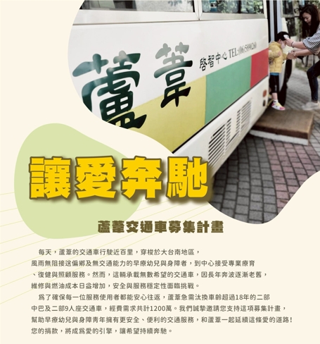 本園於聖誕節期間舉辦溫馨的聖誕活動與園遊會義賣,在全體家長與孩子們的熱情參與下,共同募集愛心善款,將所得捐贈予「蘆葦啟智中心」,用於協助中心購置交通車相關設備與所需物資,為中心的孩子與青年提供更安全、便利的服務。